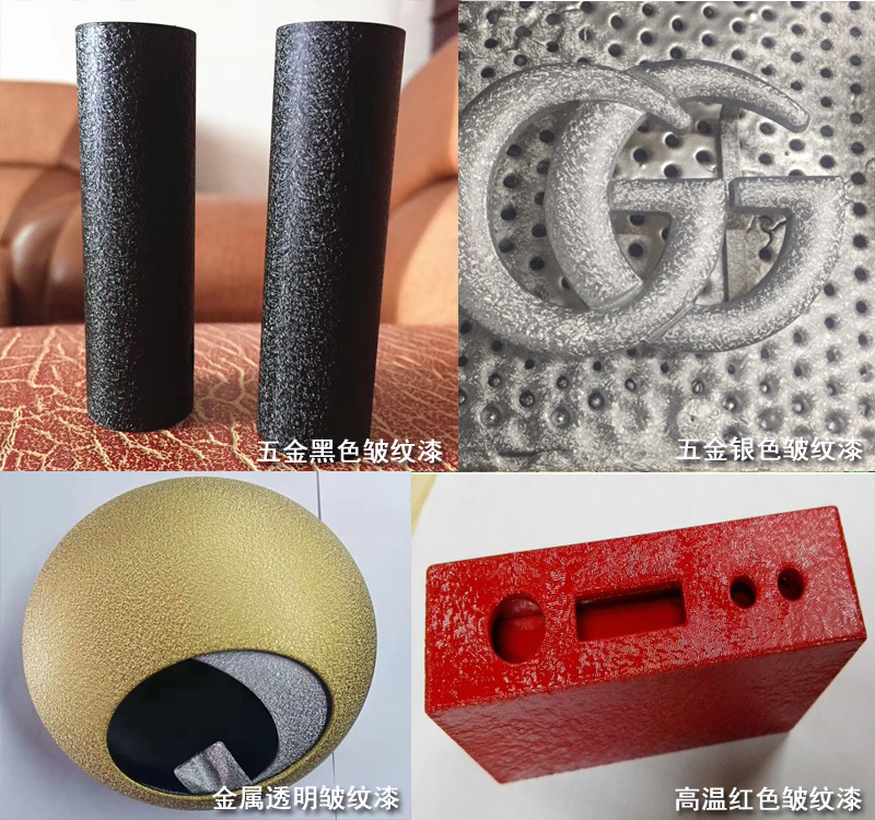 皺紋漆是單組份透明微黃液體,原料精選特殊纖維樹脂及進口皺紋助劑精制而成。無需稀釋,直接使用。噴涂性能良好,易于控制,具有附著力強,視覺美觀,皺紋效果自然,堅韌耐久,色彩調和等特點。
